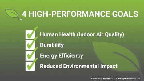 Generally, our collective goals in achieving a high-performance home include maximizing human health, durability, and energy performance, as well as reducing environmental impact.