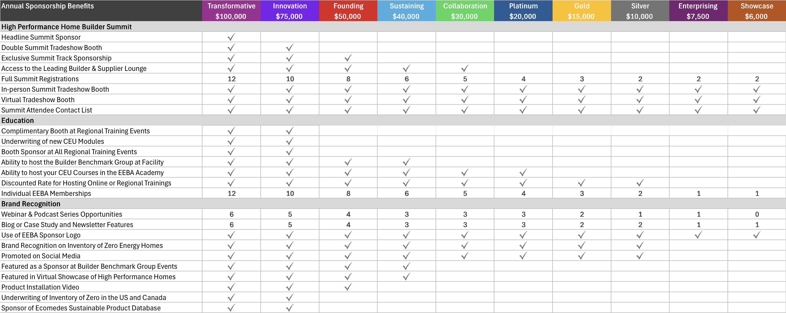 See the companies and organizations that have demonstrated their commitment to building performance education through their support of EEBA and its mission.